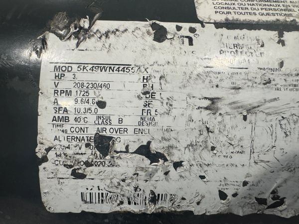 This is a new never used Marathon Motor 3HP 208-230/460V 1725 RPM Motor Model 5K49WN4455AX