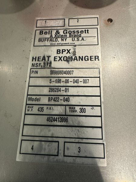 This is a new never used Bell & Gossett Brazed Plate Heat Exchanger Model 5-698-06-040-007 (BP422-040)