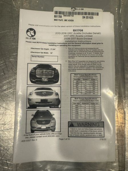 Blue Ox 226-0049 Cables W/ More For BX1708 NEW! FREE SHIPPING!