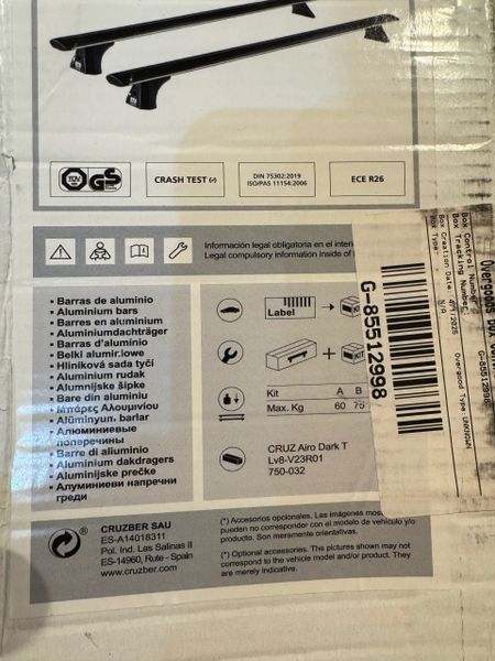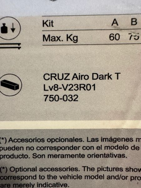 This is a new never used Cruz Airo Dark T Aerodynamic Roof Bars Model 750-032 (LV8-V23R01)