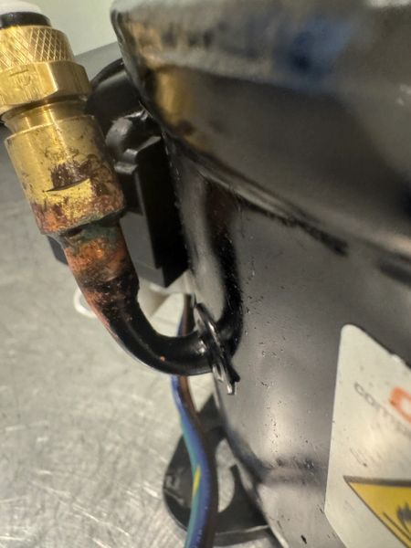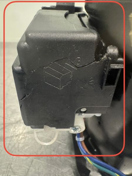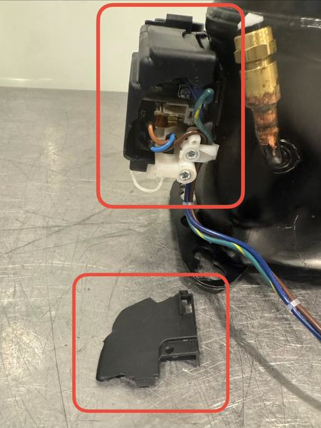 The plastic electric box on the side of the compressor is broken (see pictures 6, 7, 8 & 9).