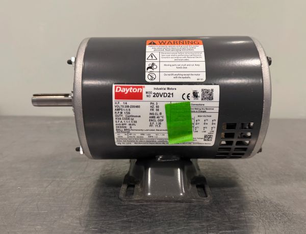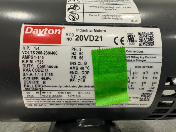 This is a new never used in original packaging 1/4 HP 1725 RPM 208-230/460V 3PH Motor Model 20VD21