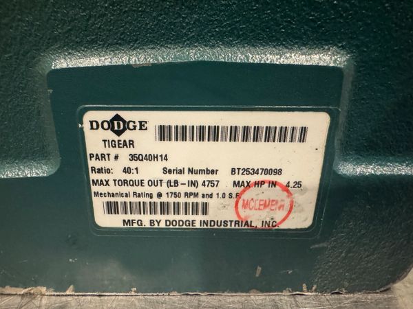 This is a new never used Dodge Tigear2 40:1 Ratio Right Angle Worm Gear Speed Reducer Model 35Q40H14