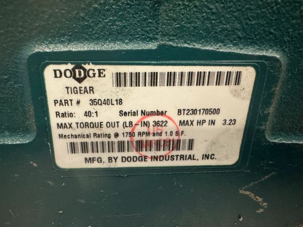 Dodge 35Q40L18 Tigear2 Worm Gear Reducer 40:1 Ratio NEW! FREE SHIPPING!