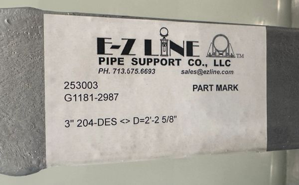 E-Z Line 253003 Pipe Support 3" 204-DES G1181-2987 NEW! FREE SHIPPING!