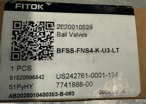 This is a new never used in original packaging Fitok Trunnion Ball Valve Model BFSS-FNS4-K-U3-LT
