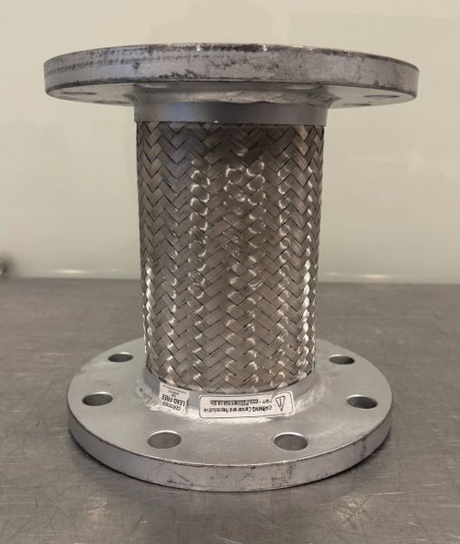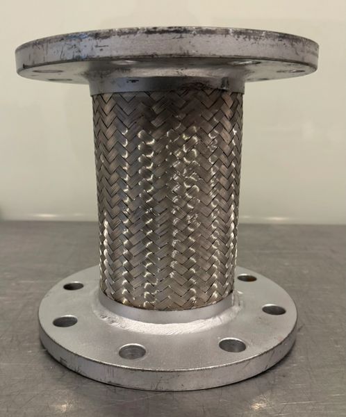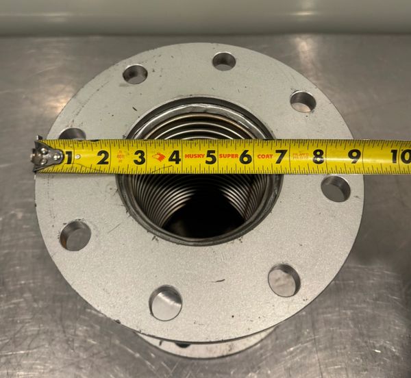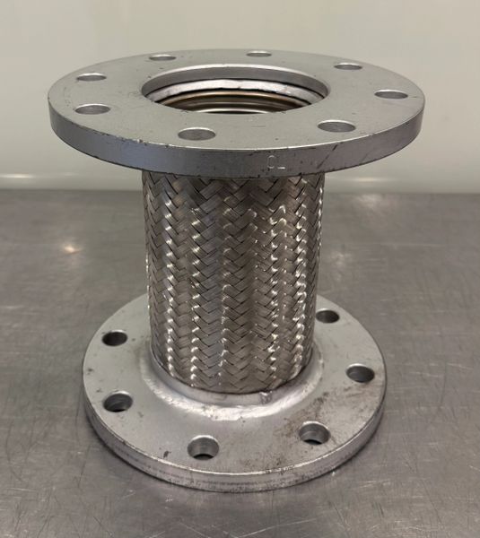 This is a new never used Flexible Coupling 4 x 9 x 9 Flanged Pump Connector 8 Bolt Stainless Steel Braid