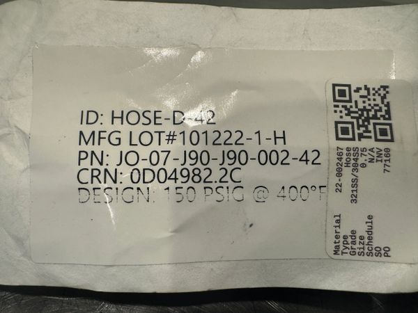 This is a new never used Flexible Jumpover Hose 321SS/304SS Size .75 Model 07-J90-J90-002-42 (22-002467)