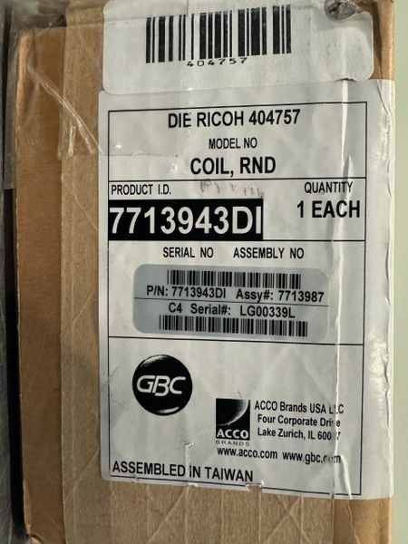 This is a new never used in original packaging GBC Ricoh Die Coil Round Model 404757