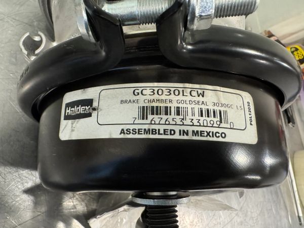 This is a new never used Haldex Gold Seal Long Stroke Spring Brake Chamber Model GC3030LCW