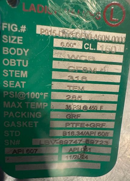 This is a new never used Ladish 6" WCB Class 150 CF8M Flanged Ball Valve