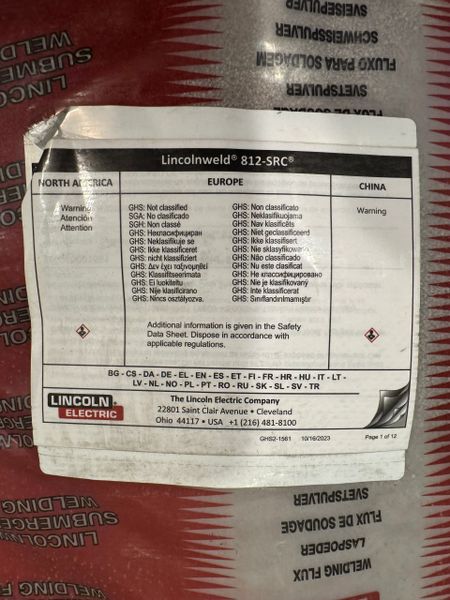 This is a new never used in original packaging Lincoln Electric 50Lb Bag Lincolnweld Submerged Arc Flux Model 812-SRC (ED034171)