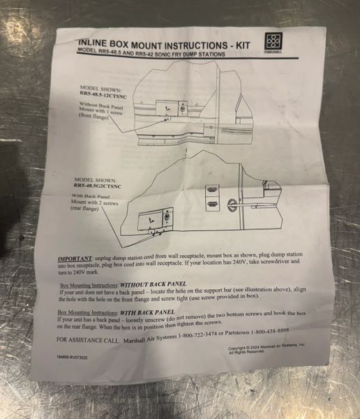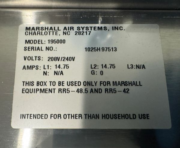 Marshall Air Systems 195000 Fry Dump Station Inline Control RR5-48.5 RR5-42 NEW!