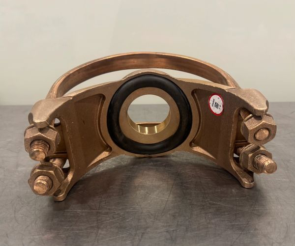 This is a new never used Mueller 6.84-7.45 Bronze Saddle Double Strap 533784-1
