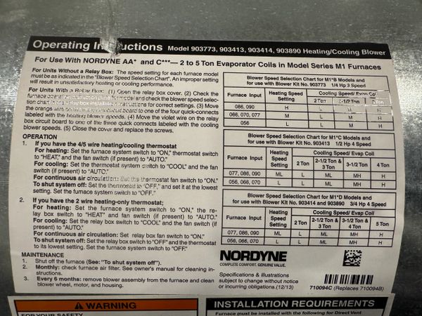 This is a new never used Nordyne Blower (710094C) with Motor Y7L623D56