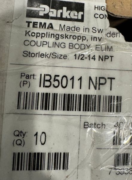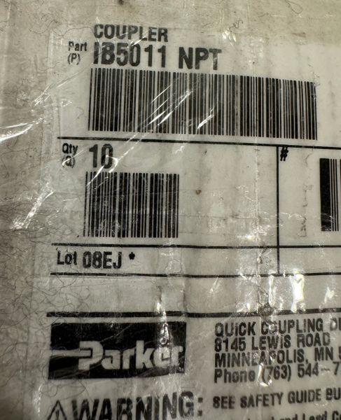 This is a new never used Parker 1/2-14 NPT Hydraulic Quick Coupling Model IB5011 NPT