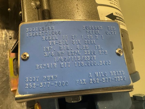 Scot Pump # 11 SF 1.25 x 1 Motorpump Baldor .75 HP 115/230V NEW! Dented! SHIPS FREE!