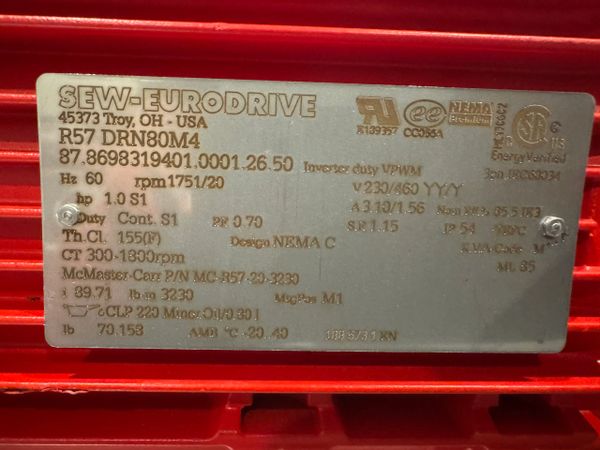 Sew Eurodrive Gearmotor 87.8698319401.0001.26.50 R57 DRN80M4 NEW! FREE SHIPPING