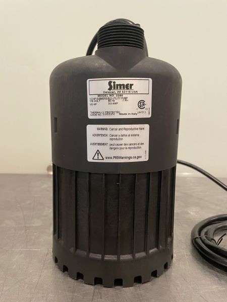This is a new never used Simer Submersible Pump 1/2 HP 115V 1PH 3.0A model 2385