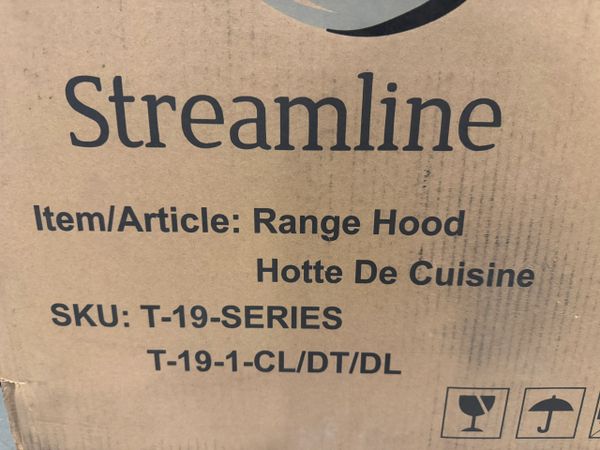 This is a new never used in original packaging Streamline Wall Mount Range Hood in Brushed Stainless Steel Finish Model T-19-1-CL/DT/DL