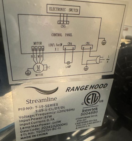 Streamline T-19-1-CL/DT/DL Range Hood Brushed Stainless Wall Mount NEW IN BOX!