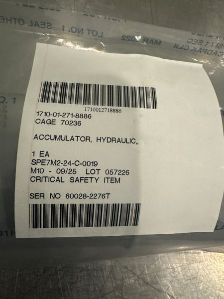This is a new never used Tactair 08 60028 Hydraulic Accumulator Model 1710-01-271-8886 (80020S0CN6532D981-1)