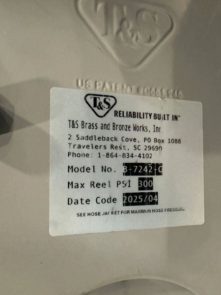 This is a new never used T&S Hose Reel Epoxy Coated Steel Model B-7242