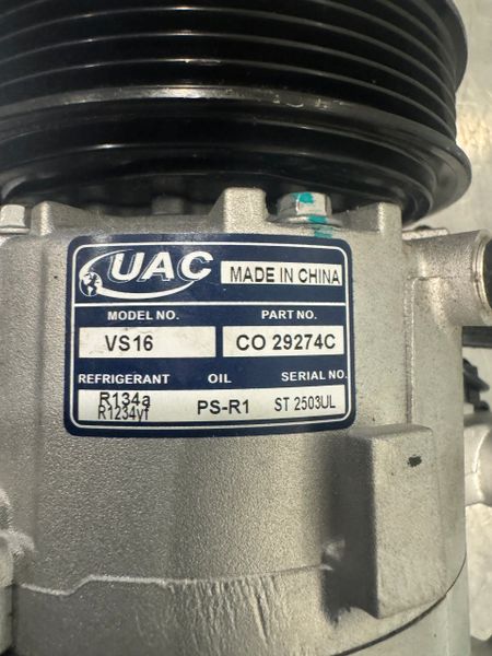 This is a new never used Genuine UAC AC Compressor VS16 Model 29274C