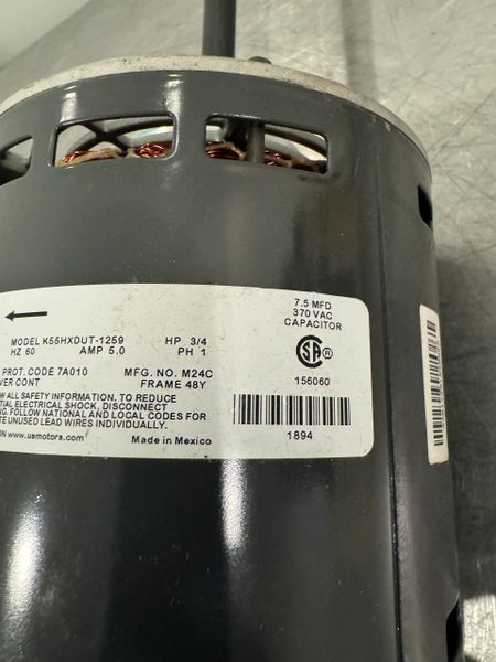 This is a new never used US Motors 3/4HP 1PH 1075 RPM Blower Motor Model K55HXDUT-1259