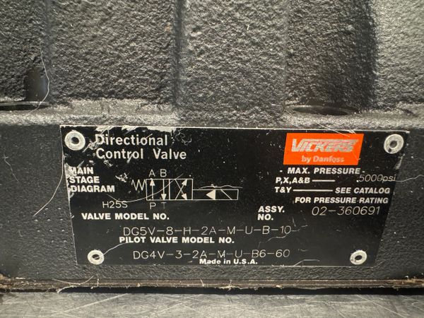 This is a new never used Vickers Hydraulic Control Valve Model DG5V-8-H-2A-M-U-B-10