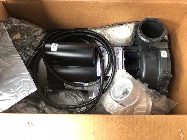This is a brand new never used in original packaging Waterway 5HP 56FR 230V 2SP 2” 8’ 4 Pint amp Executive spa pump model 372202A-1D5AU