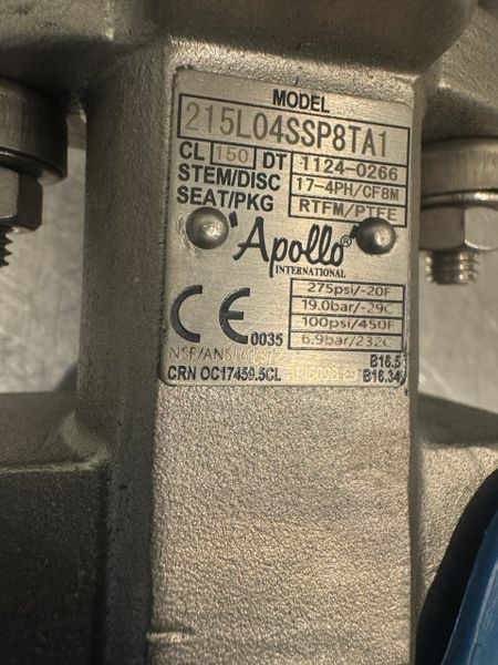 This is a new never used Apollo Butterfly Valve 4” Stainless Steel Model 215L04SSP8TA1