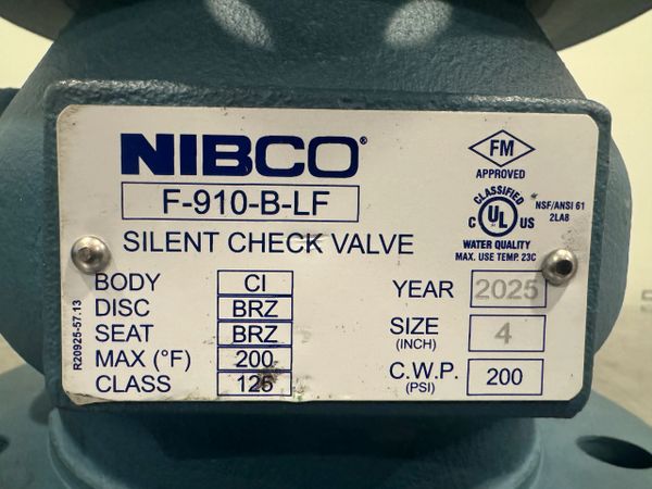 This is a new never used Nibco 4” 200 CWP Silent Check Valve Model F-910-B-LF