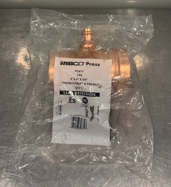 This is a new never used in original packaging Nibco Press Copper Tee 4” X 4” X 3/4” Model PC611