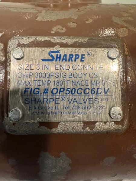 Sharpe OP50CC6DV Ball Valve 3” 3000 PSIG Body NACE MR 0175 NEW! NO HANDLE!