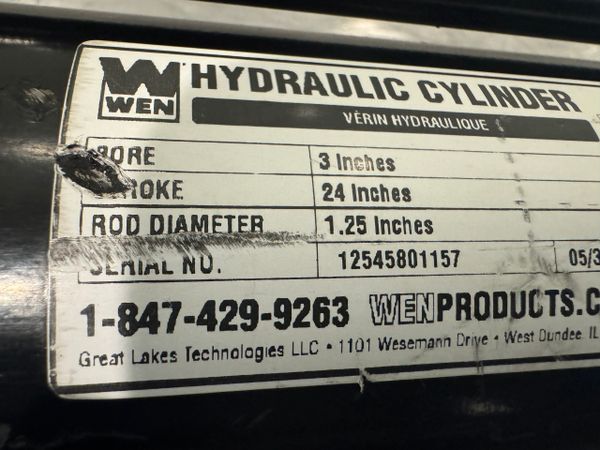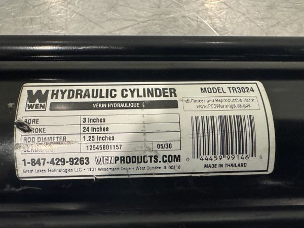 This is a new never used Wen Tie Rod 3” Bore 24” Stroke Hydraulic Cylinder Model TR3024